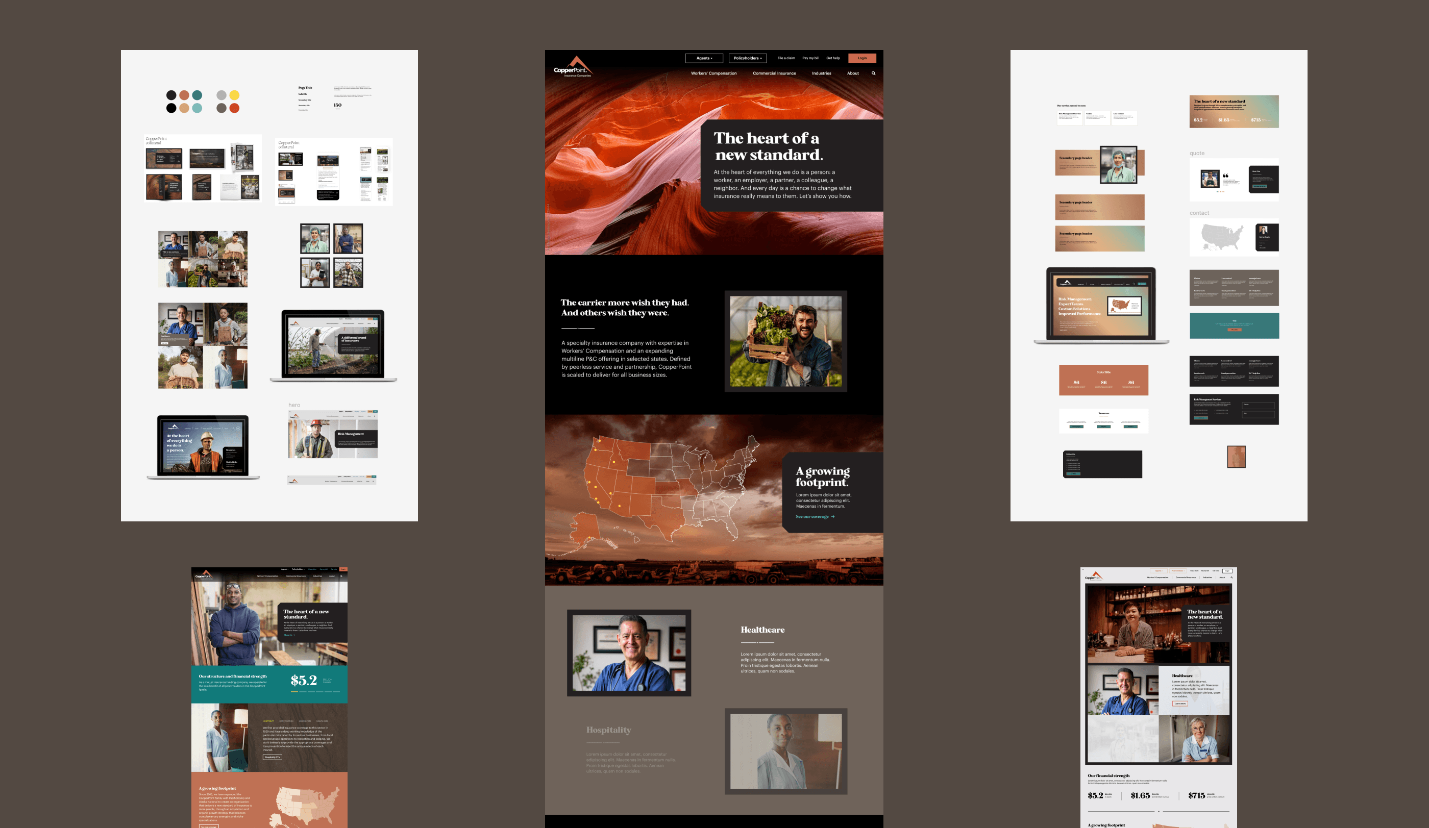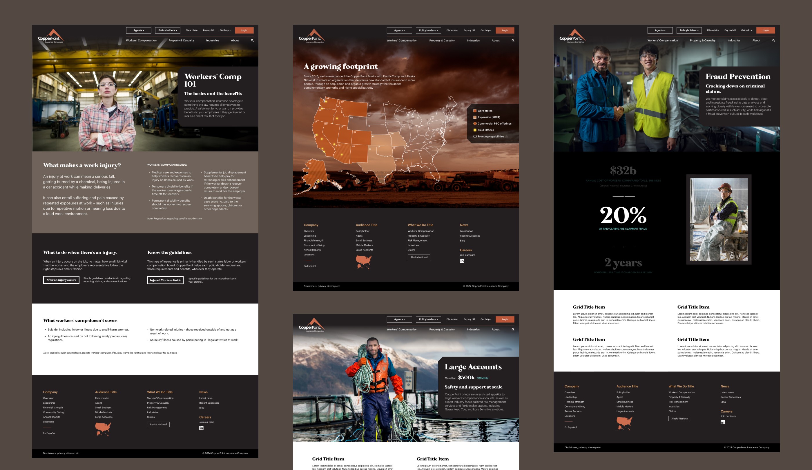 CopperPoint’s offerings span multiple products, industries, and audiences. One of the core challenges was organizing that complexity into a structure that felt simple and intuitive. I led the UX and information architecture effort, defining a clear site flow and logical hierarchy across the entire experience. Every decision was grounded in helping users quickly understand where they are, what CopperPoint offers, and what their next step should be. An extensive set of wireframes delivered as a clickable prototype allowed the team to experience the website before focusing on visuals.