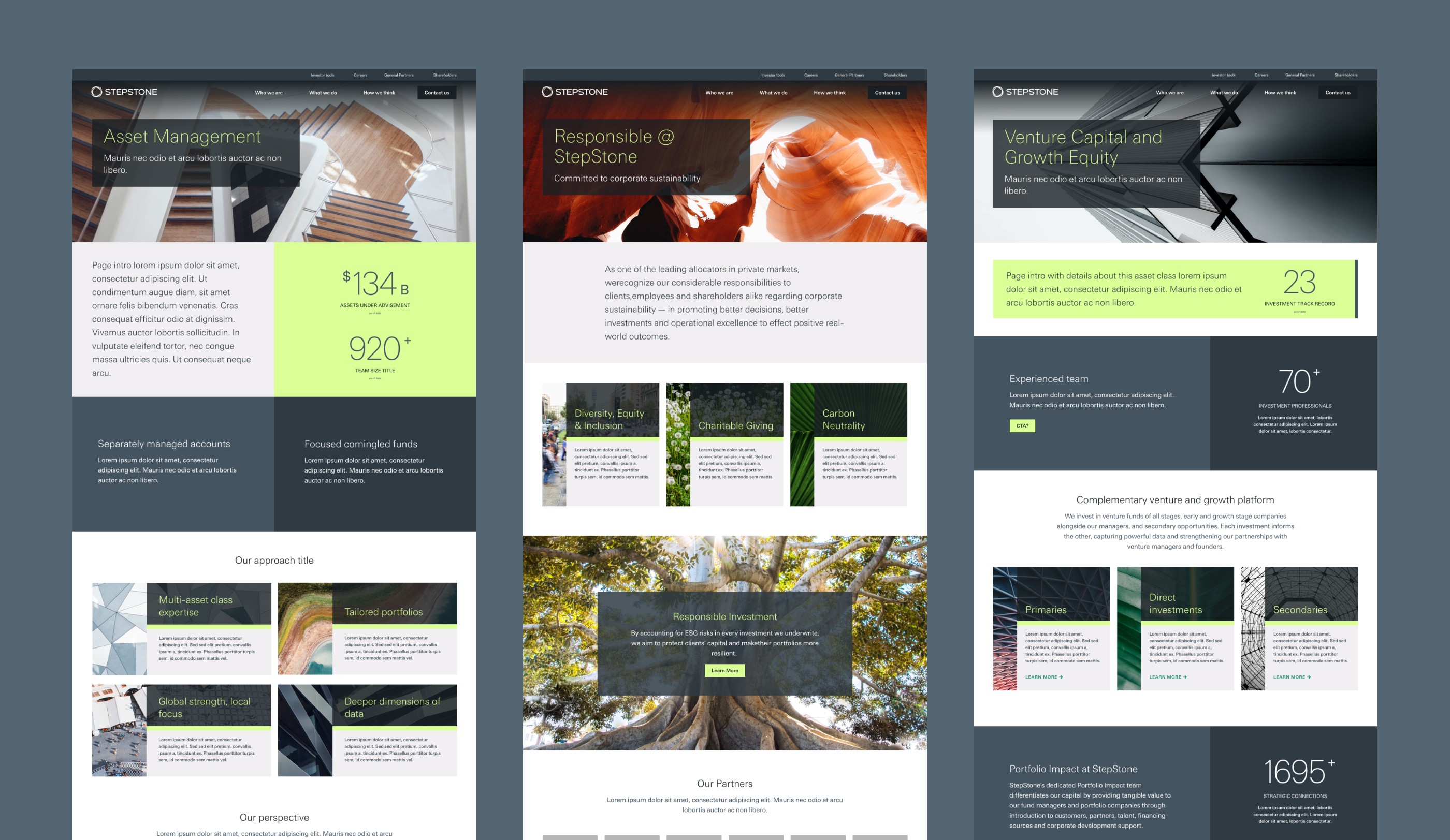 I was brought on by our partners, the brand consultancy Dappersmith, to complete website experience for StepStone. My role covered everything visible and structural: UX, information architecture, and visual design across the entire site. The goal was not just to apply a brand, but to make it work across a broad range of audiences, offerings, and use cases, while remaining clear and adaptable.
